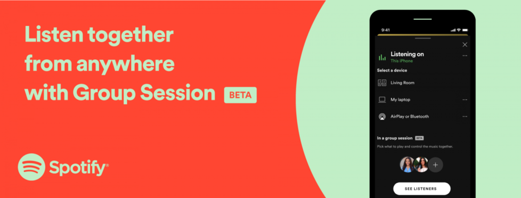 Spotifyが、今年5月にベータ版を公開していたプレイリスト、曲、ポッドキャストを複数人でリアルタイム共有できる「Group Session」にリモートで利用できる機能を追加した。