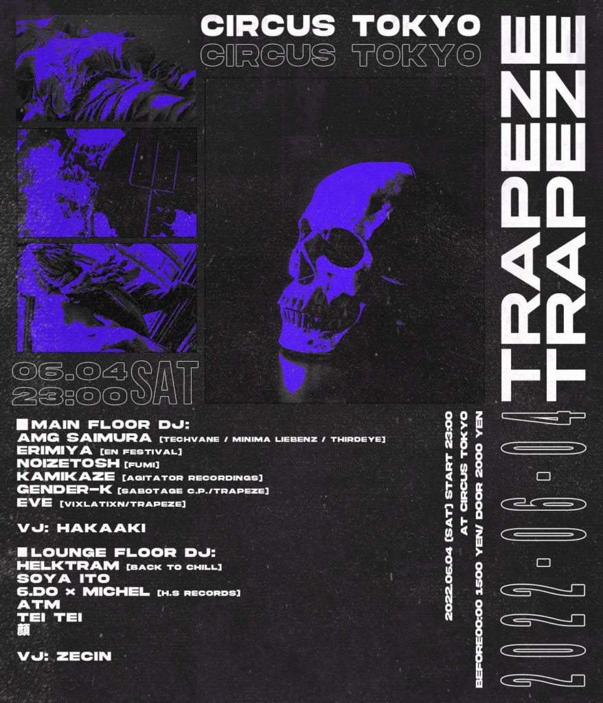 90s RAVE SOUNDとDARK TECHNO、TRANCEが交わり90s RAVEの再燃が始まった今、東京で最先端のTechno Party『TRAPEZE vol.2』がCircus Tokyoで6/4 Saturdayに開催される!!