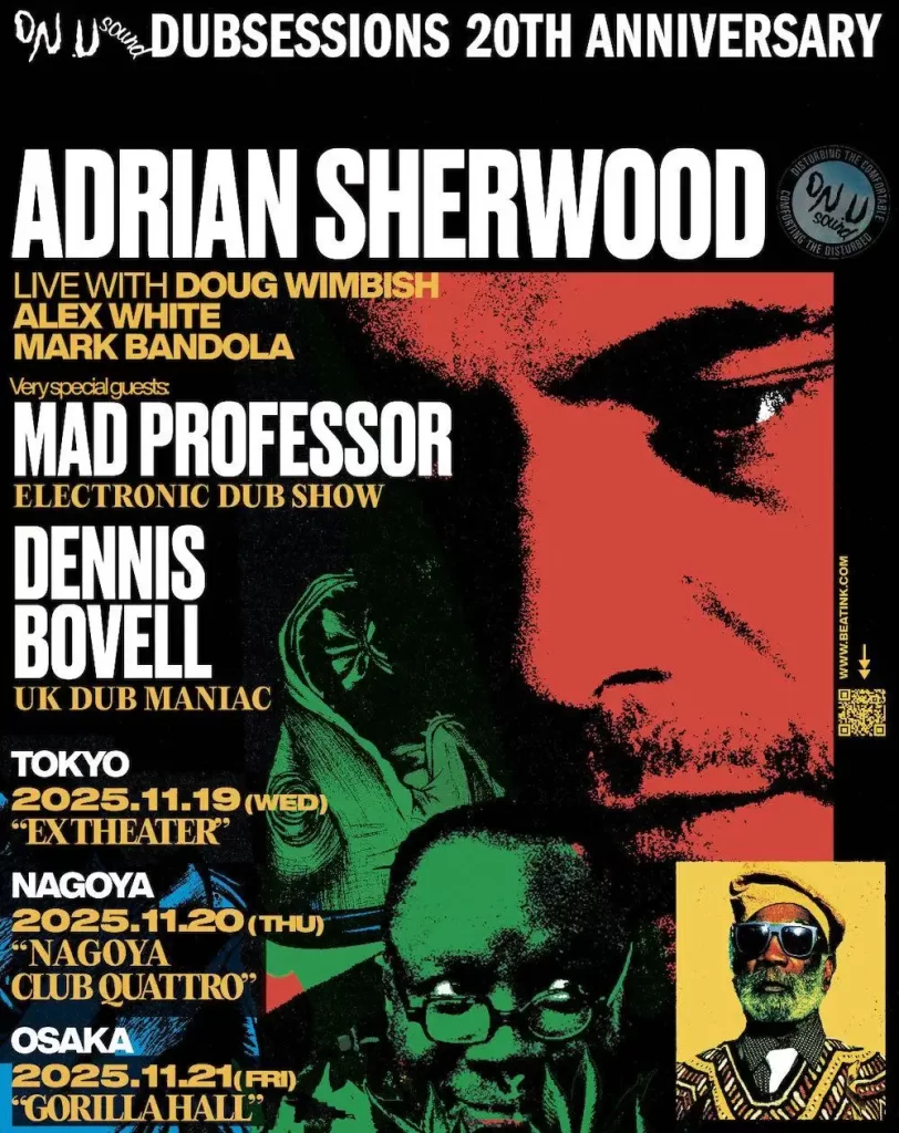長年にわたってUKダブの最前線を走り続けるエイドリアン・シャーウッドが手がけるシリーズイベント『DUB SESSIONS』が、今年ついに20周年を迎える。これまでに古くはリー・ペリーやザ・スリッツらを招き、近年では一昨年の大反響を巻き起こしたアフリカン・ヘッド・チャージとGEZAN、昨年はホレス・アンディと〈ON-U Sound〉の原点バンド=クリエイション・レベルが共演するなど、毎回毎回、錚々たる伝説級の出演者たちがシーンもフロアも大激震の熱い内容でソールドアウトを連発してきた。