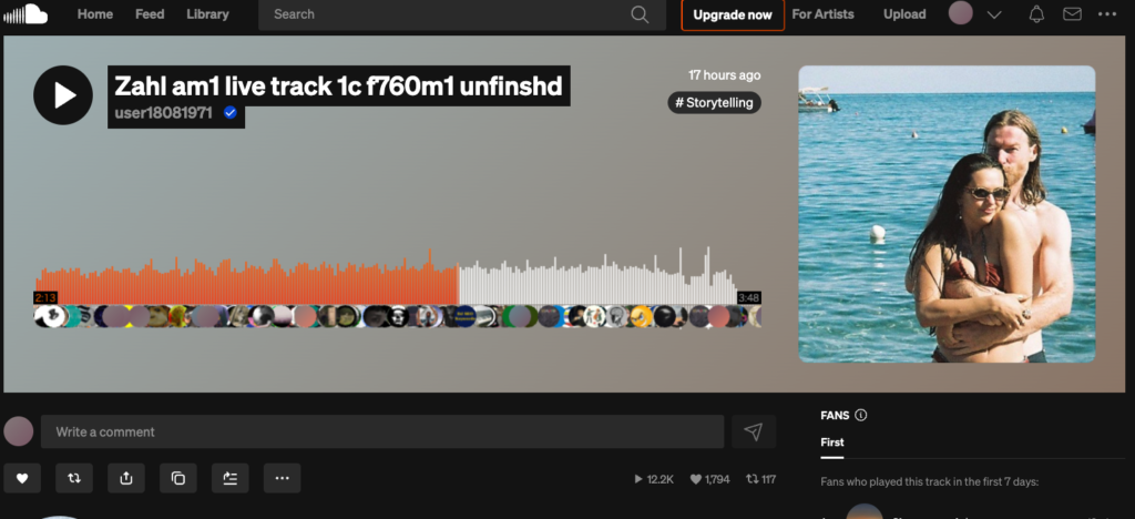 また楽曲と共にアップロードされた写真がイタリアで撮影されたものであることについても言及。さらに「最近シリー諸島で愛する人と一緒に撮った写真だよ…。太陽が必要だ…。イギリスでは容赦なく雨が降っている…。Zahl(おそらくドイツのオーディオ機器メーカー「Zähl」のミキシングコンソールと思われる」でミックスダウンしたけど、もっと良いミックスがあると思うから見つけたらアップロードする」と付け加えている。(「Zahl am1 live track 1」には「ambient mix」とだけ記されている)。