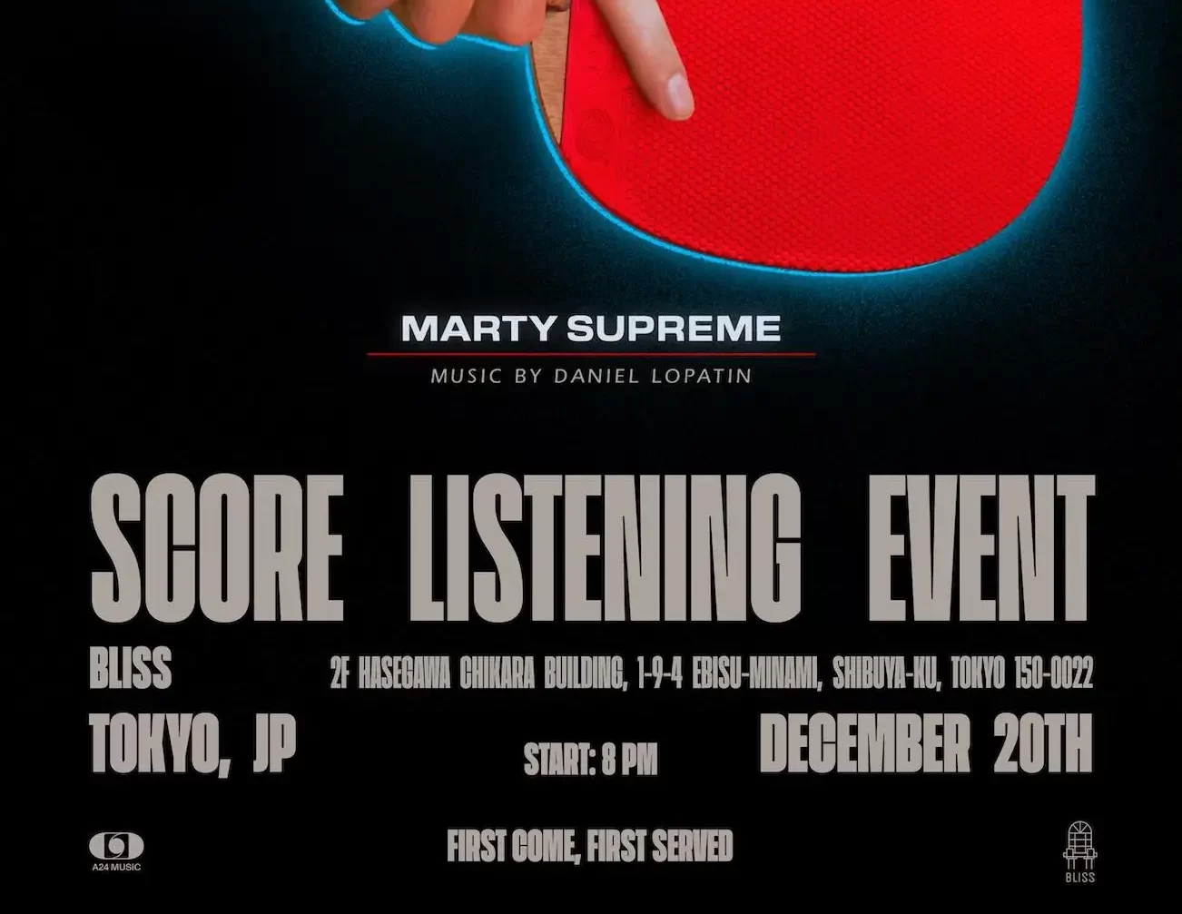 ジョシュ・サフディ監督、ティモシー・シャラメ主演。グウィネス・パルトロー、オデッサ・アジオン、ケヴィン・オレアリー、タイラー・ザ・クリエイターことタイラー・オコンマ、アベル・フェラーラ、フラン・ドレシャーらが出演し、すでにゴールデングローブ賞3部門にノミネートされるなど大きな話題を集めている映画『マーティ・シュプリーム 世界をつかめ (原題:Marty Supreme)』。ワンオートリックス・ポイント・ネヴァーことダニエル・ロパティンが手がけたオリジナル・サウンドトラック・アルバム『Marty Supreme (Original Motion Picture Soundtrack)』の特別試聴会が12月20日 (土) に、東京・恵比寿のバー「BLISS」にて開催されることが決定した。