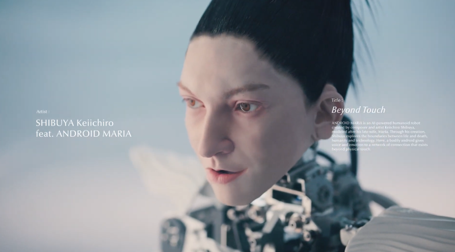 本CMのために渋谷慶一郎が新曲『Beyond Touch』を書き下ろし、アンドロイド・マリアはヴォーカリストとしてパフォーマンスするだけでなくAIで作詞も担当し、物理的な接触を超えて生まれる“つながり”や、人間とテクノロジーの新しい関係性を歌い上げている。さらに本作には、ニューヨーク在住でグラミー賞受賞ベーシストのシャーロット・ケンプ・ミュールと彼女が率いるロボットアームと音楽によるプロジェクト「Finis Musicae」が特別ゲストとして参加、映像に華を添えている。