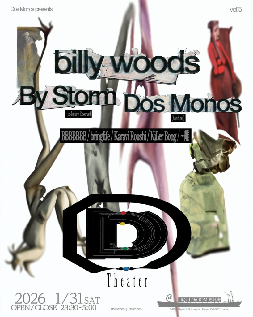 BBBBBBB、bringlife、Karavi Roushi、Killer Bong、〜離も、一見Dos Monosとは違うところにいるように見えるかもしれないけど、日本の中でそういう音楽をやってきた、やろうとしている人たちだと思って呼んでいます。すぐに説明がつかないものにぶち喰らうという体験をみんなもっとした方がいい。1月31日、最近全部がつまらねえなと思ってる人にこそ来てほしいです。絶対来てください。