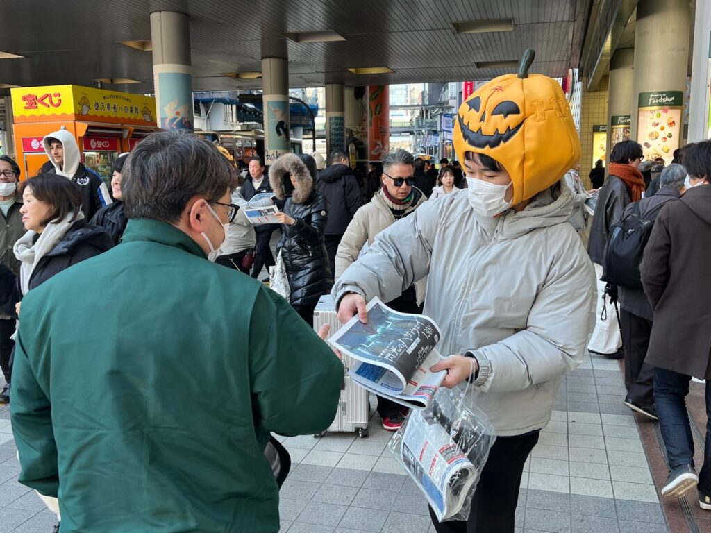 現地では、「閃光のハサウェイ」シリーズに登場する「偽マフティ」のカボチャの被り物を付けたスタッフが号外を配布するなか多くのファンが駆けつけ、予定時間を大幅に繰り上げての配布終了となった。