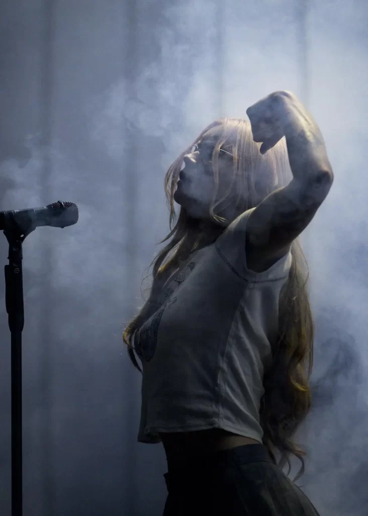赤く染まるスモークの中、登場したフロントウーマン、リアン・ティーズデールはマッスルポーズを決める。鍛え上げられた身体が象徴するのは、フィジカルの変化だけではない。視線、間、立ち姿、すべてが「強くなった」リアンである。オープニングは、「catch these fists」。拳を振り上げるタイトル通り、リアンのパンチが効いた攻撃的な歌詞。クィアであることを公表し、若い世代のアイコンともなった彼女の存在は、若者たちのLGBTQ+を牽引している。