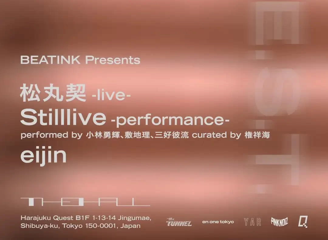 3月21日(土)のイベントはBEATINKがキュレーションを務め、昨年ジョーディー・グリープの日本ツアーバンドメンバーに起用され、元ブラック・ミディのキャメロン・ピクトンによるマイ・ニュー・バンド・ビリーヴの楽曲にも参加している松丸契、先日POP YOURS 2026のオープニングDJを務めることも決定し、これまでにLauren Duffusやjackzebraとも共演しているeijinが出演。さらに、身体を通して人間の存在や関係性を探るパフォーマンス・プラットフォームStillliveによるパフォーマンスも予定されており、現代美術家・パフォーマンスアーティストの小林勇輝、振付家・ダンサーの敷地理、アーティストの三好彼流が参加。東京都現代美術館学芸員の権祥海のキュレーションのもと、個の身体と集団的な協働が交差する瞬間を提示するパフォーマンスが披露される。