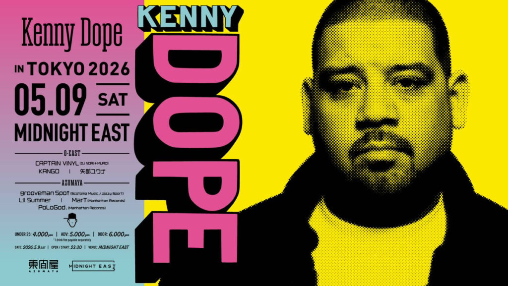 ブルックリン出身のDJ / プロデューサーKENNY DOPEにとって9年ぶりのソロ来日ツアーとなる今回、東京公演は5月9日(土)に渋谷MIDNIGHT EASTにて開催。
